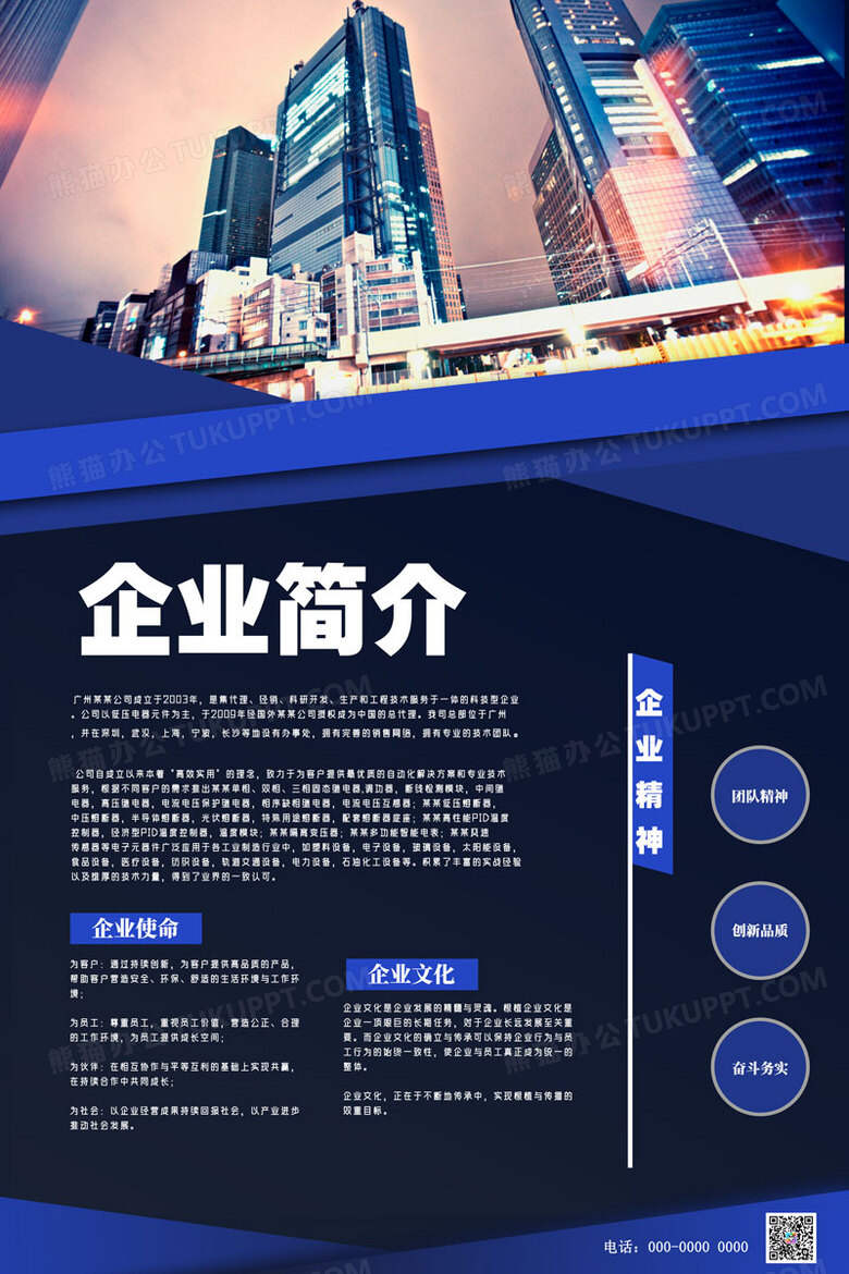 核心内容区:提炼3-4个核心板块(如产品/服务亮点、企业优势、客户案例、核心价值),每个板块用1-2句话说明,搭配简洁配图,避免大段文字。